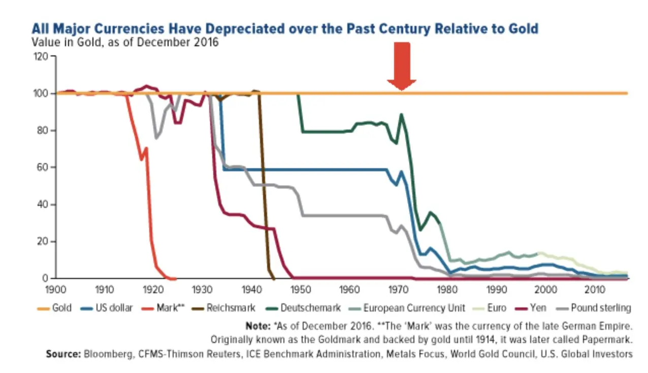 Stopping the conversion of the US dollar to gold didn’t help invent computers or lead to exploding healthcare costs.